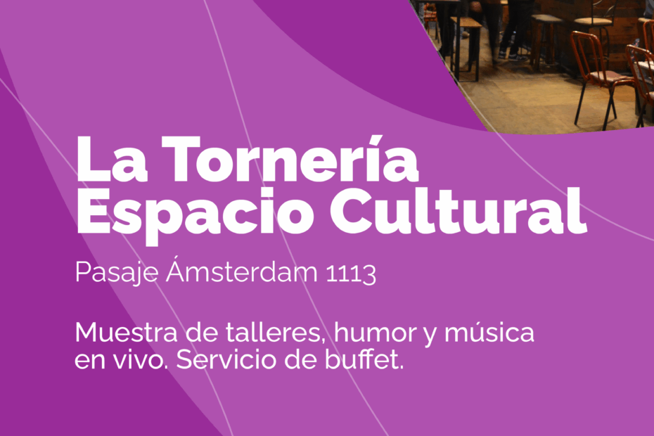 La Torneria (Pje. Amsterdam 1113) Muestra de talleres del espacio, servicio de buffet con las pizzas más ricas de la zona, sabrosas empanadas y gigantes hamburguesas, todo a precios accesibles. Humor y música en vivo.